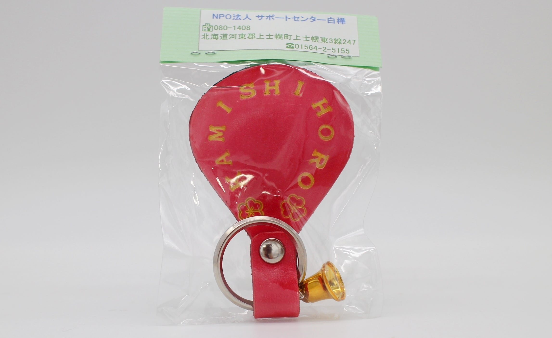 キーホルダーは革製で表面は『牛柄』、裏面は「KAMISHIHORO」の印字いりです♪